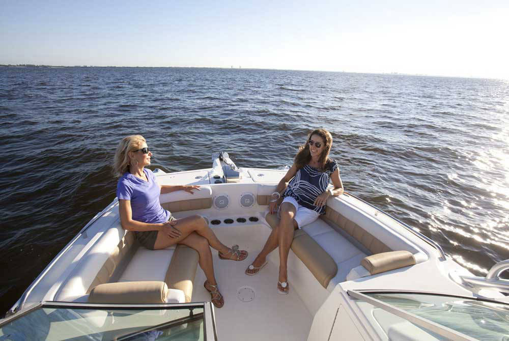 • Power-assist steering with 13”, 316-grade stainless steel steering wheel