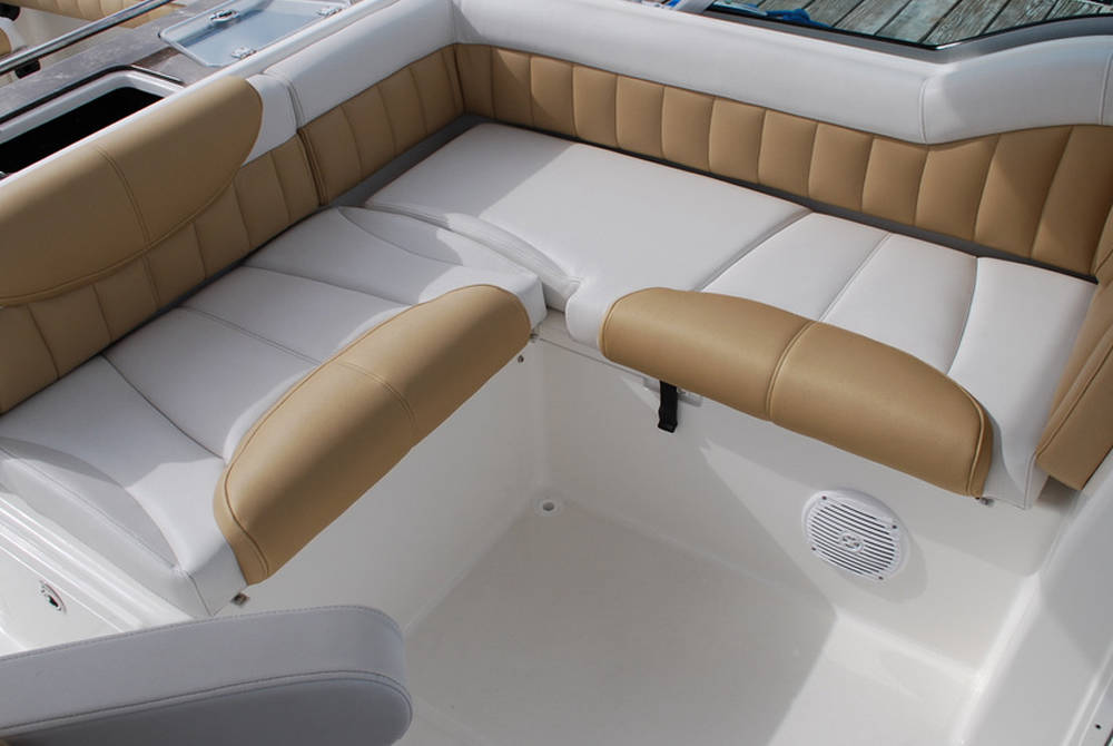 • Deluxe helm bench seat with flip-up bolster and arm rest