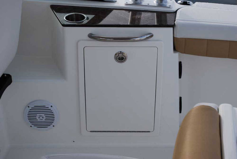 • >Storage cabinet under L-lounge accessible inboard (replaced with optional refrigerator)