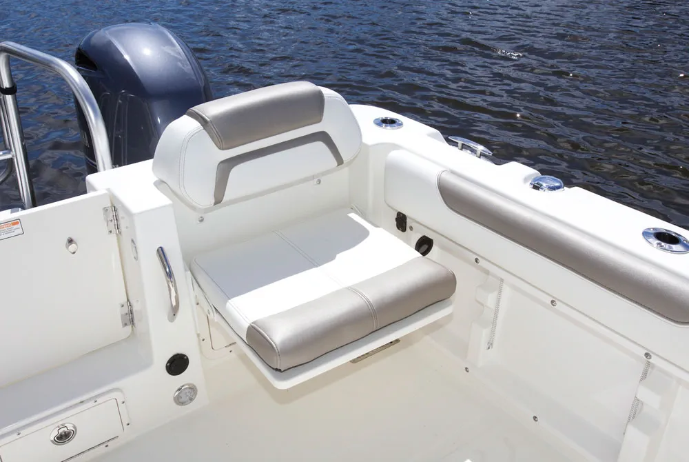 • Helm and passenger dual custom seats with flip-up bolsters and recessed stainless steel cup holders
