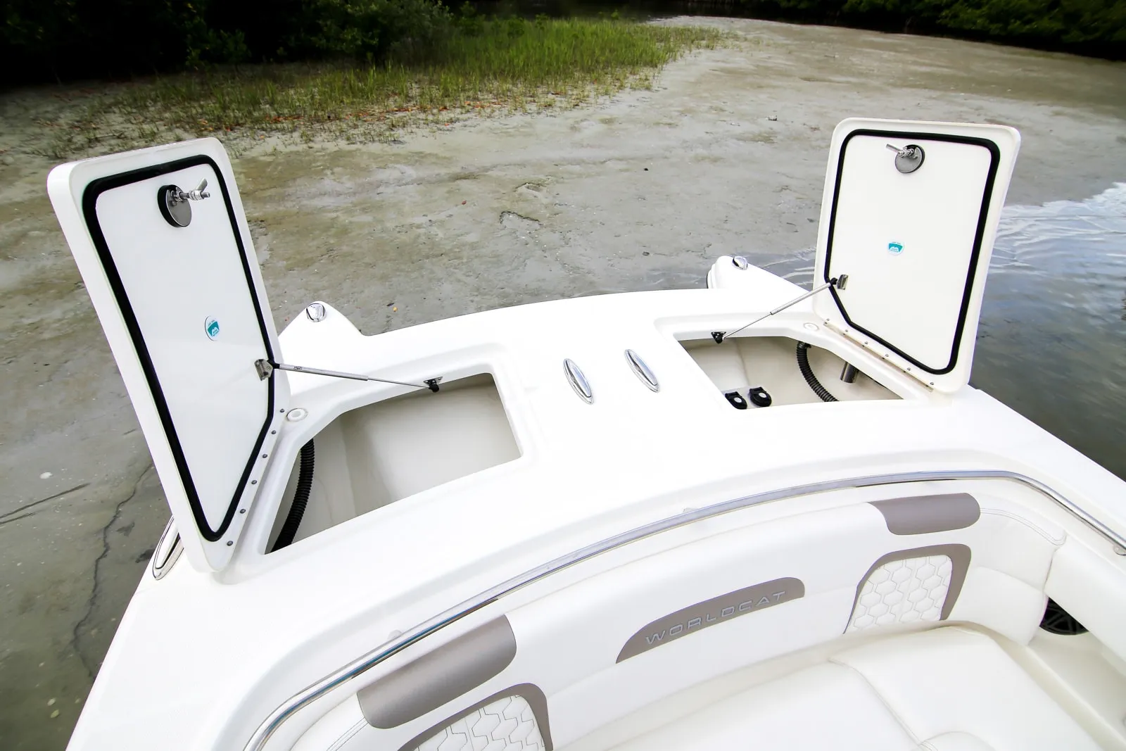 • Insulated 180-quart port and starboard storage compartments with overboard drains
