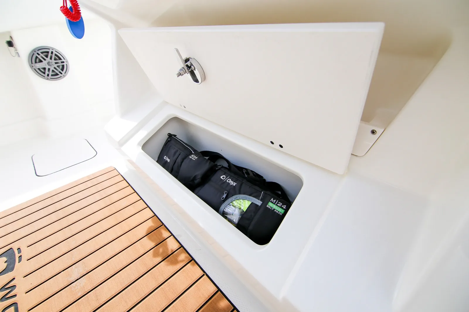 • Port and starboard 6-quart personal cooler areas under gunwales keeps cold beverages at hand