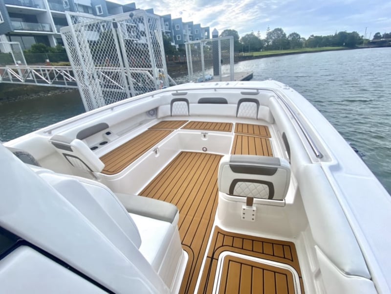 • Accent package: anti-fatigue helm mat and synthetic teak console interior