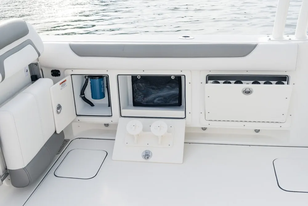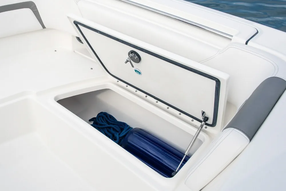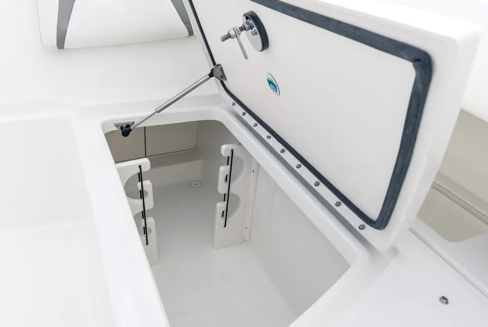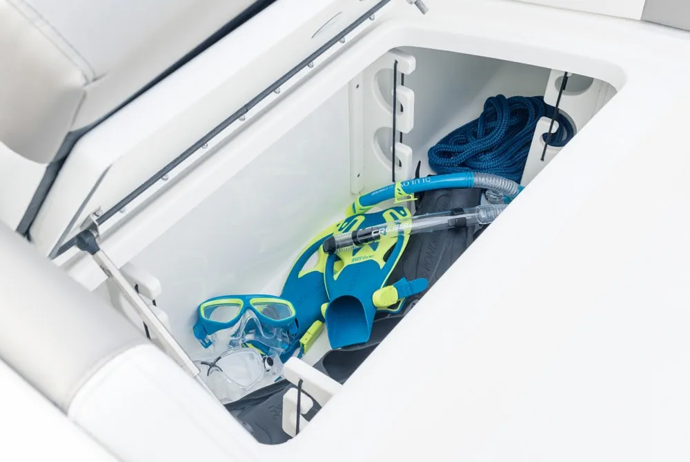 • Port seatbox compartments for battery management, freshwater pump, and drawer storage