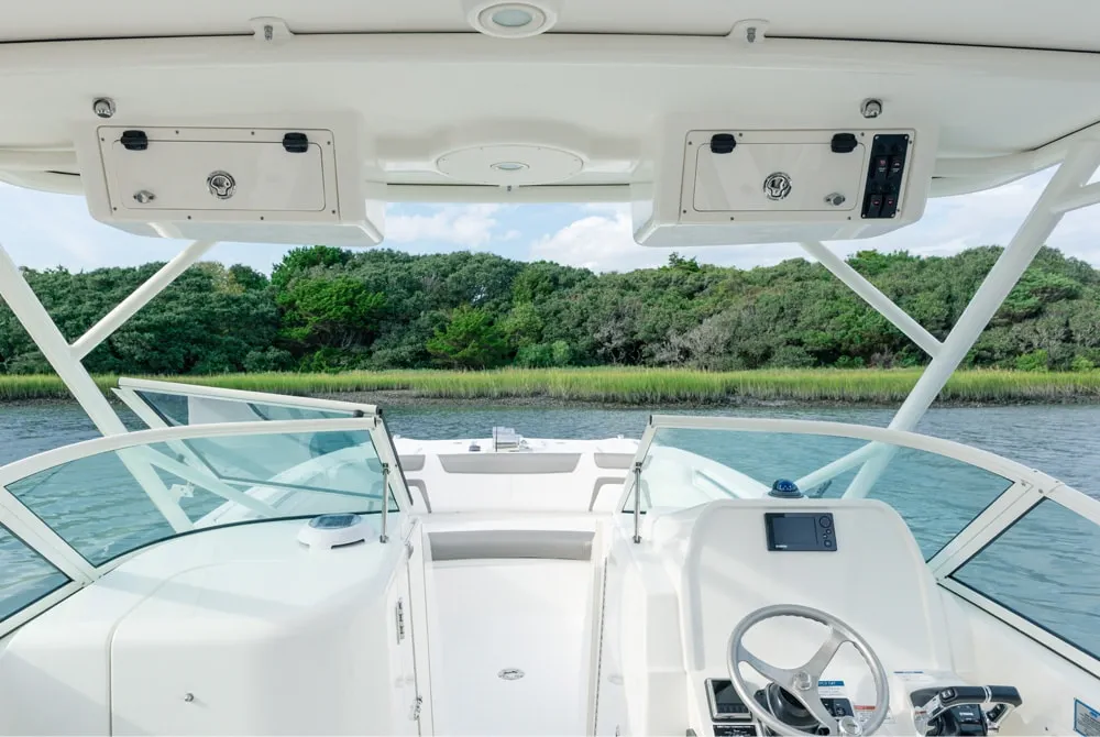 • Bi-fold weather door between the consoles to prevent wind and rain from entering the helm