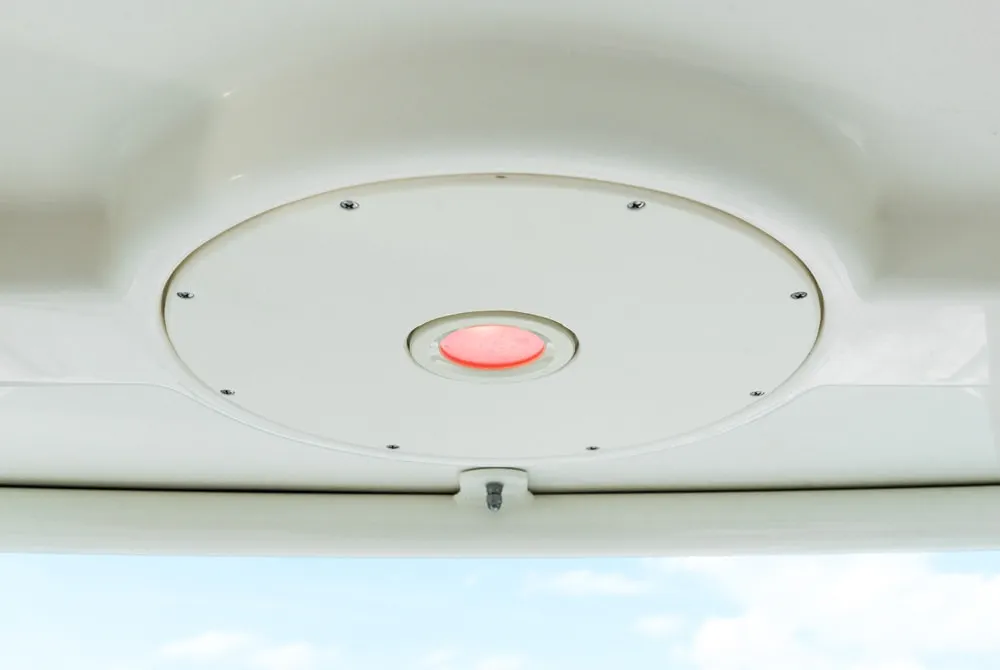 • Fiberglass top with aluminum frame, radio box with flat panel to mount the VHF, overhead lights, 6 rocket launchers and spreader lights