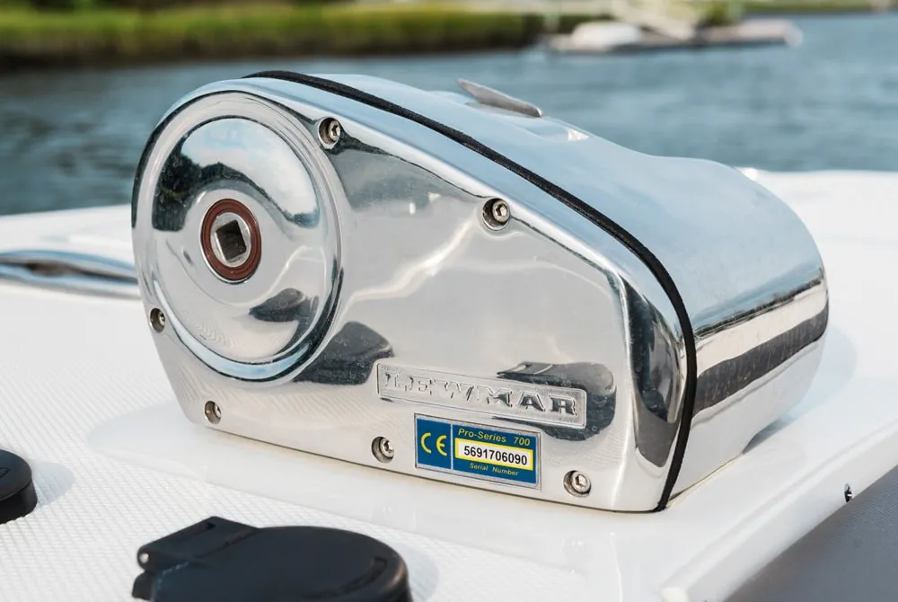 • Pro Series free-fall windlass with 300-foot line, 15-foot chain, 22-pound anchor, and foot switches