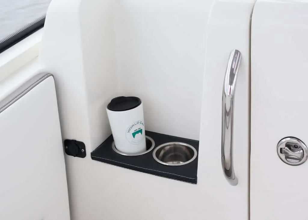 • Port and starboard gunwale inserts with 3 cup holders, storage bins, and speakers