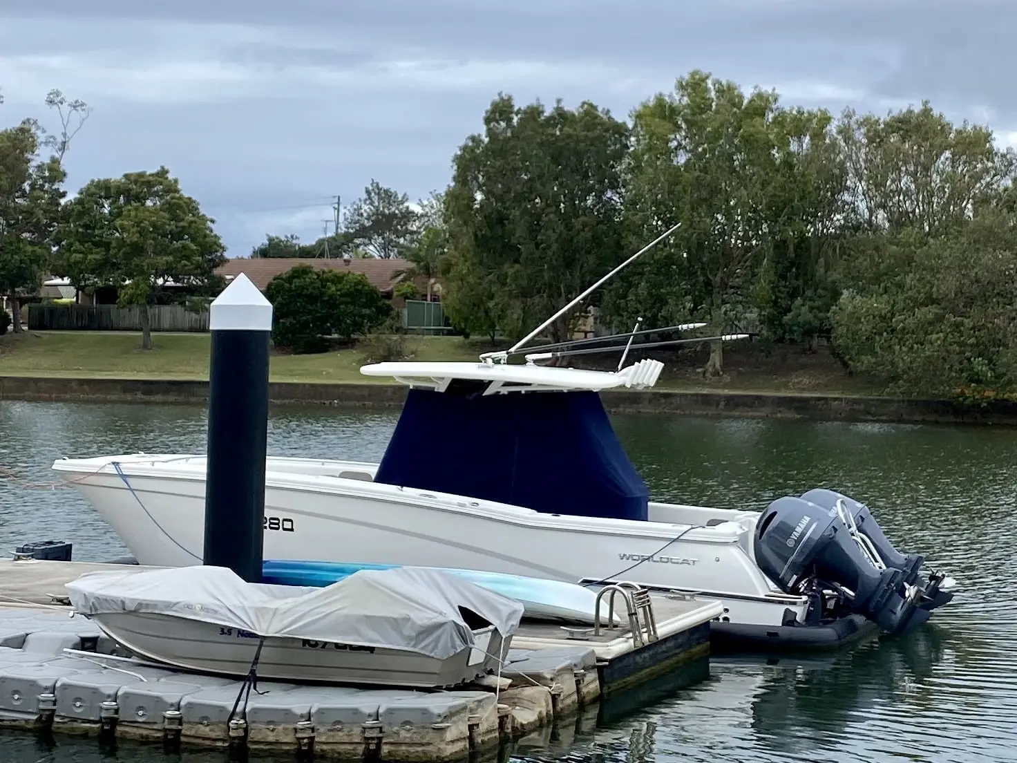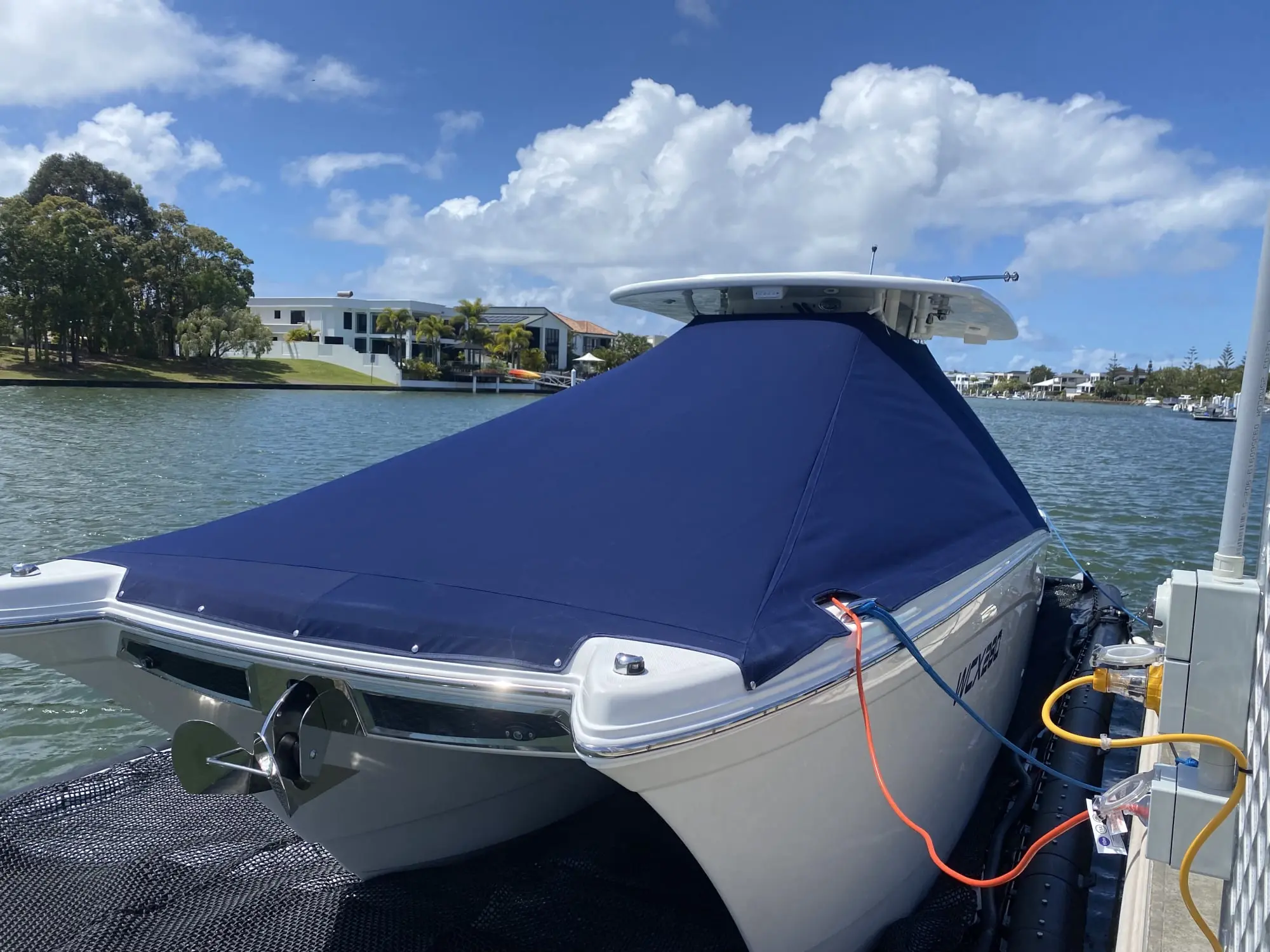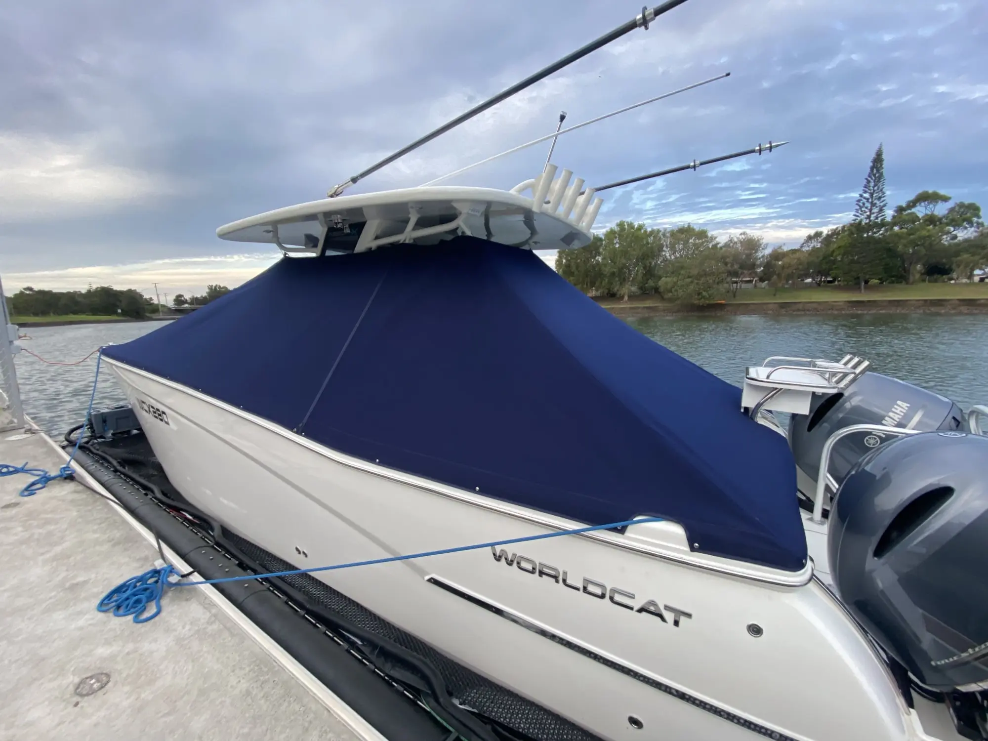 - Custom Boat Cover (Premium fabric) - 2-piece design for overnight camping