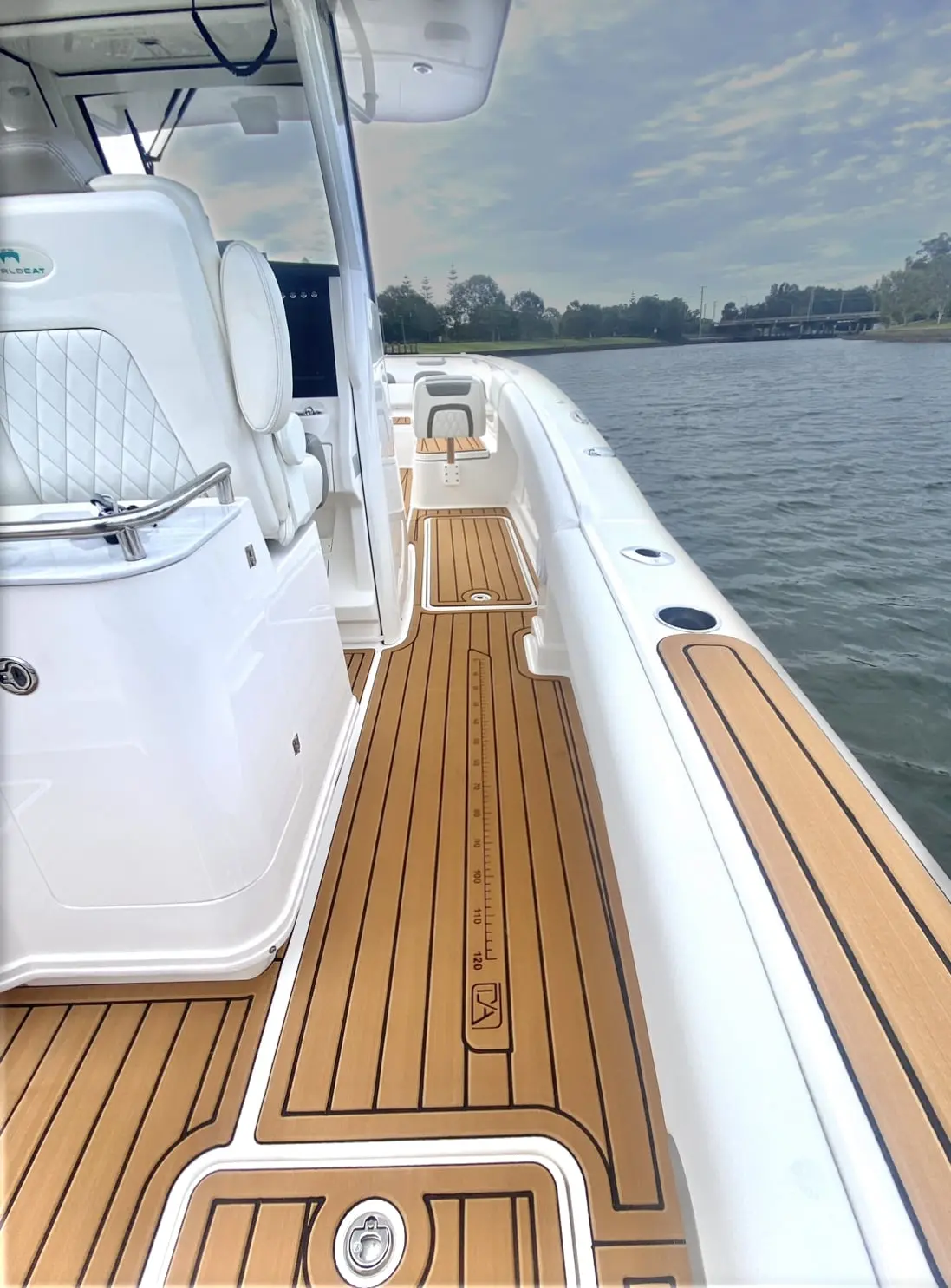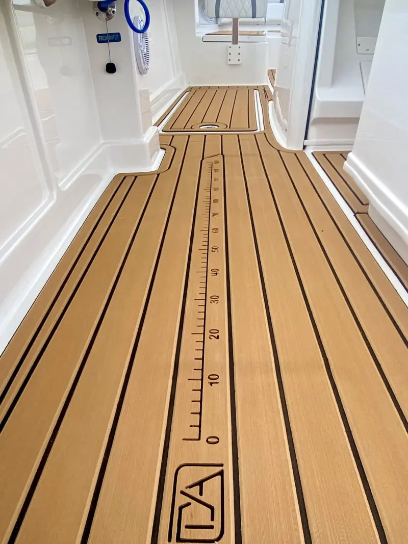 • Accent package: anti-fatigue helm mat and synthetic teak console interior