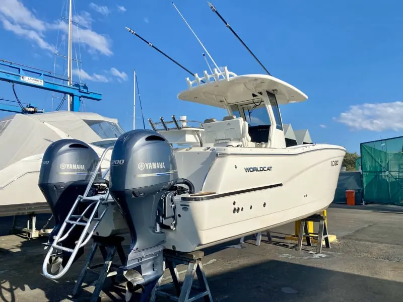 • Aggressive bow styling with integrated high-intensity LED docking lights, surrounding fascia, thru-hull anchor and World Cat lettering