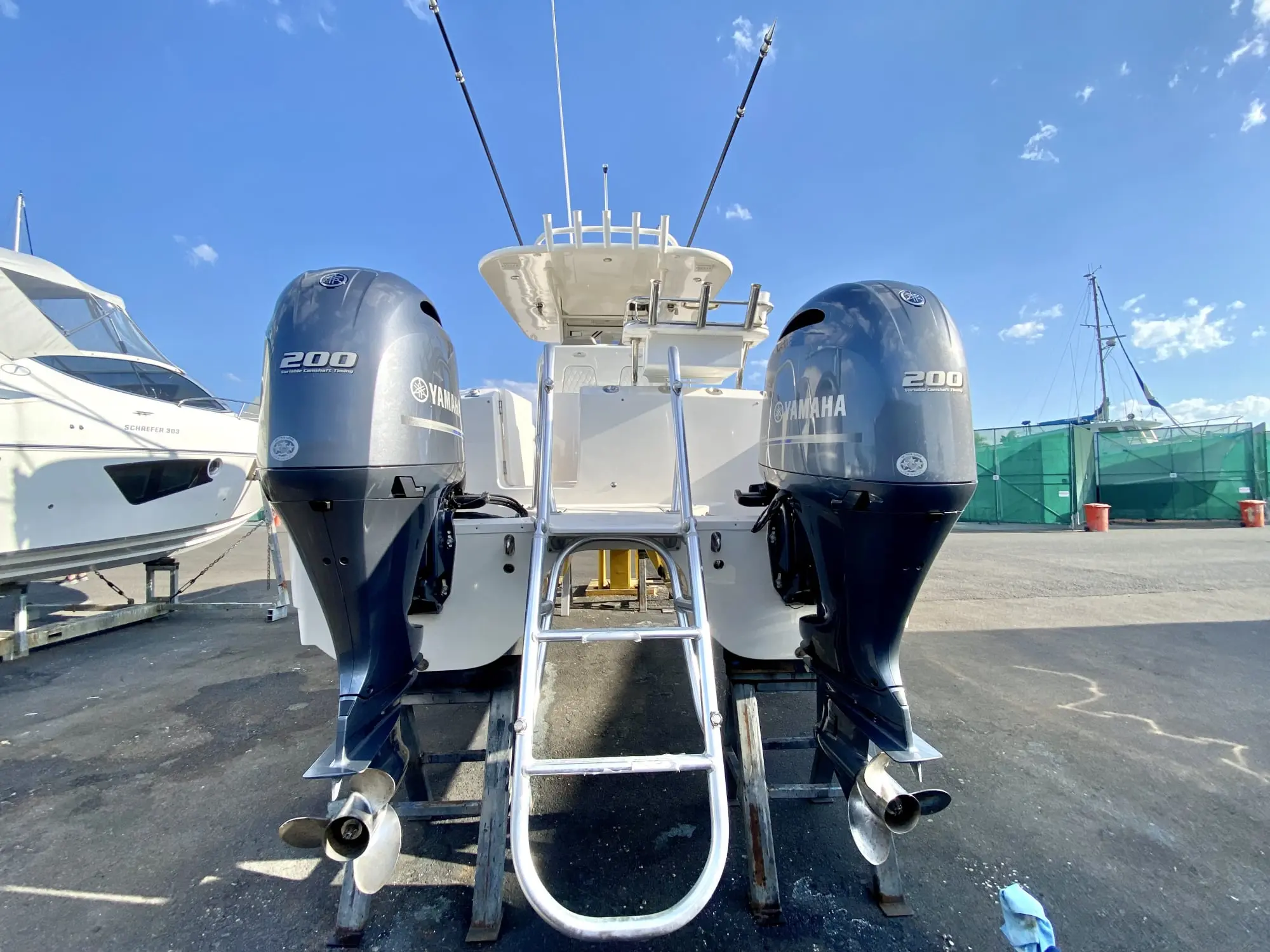- Engines: Twin Yamaha F200XCA with Yamaha Digital Electronic Steering and EX Controls
