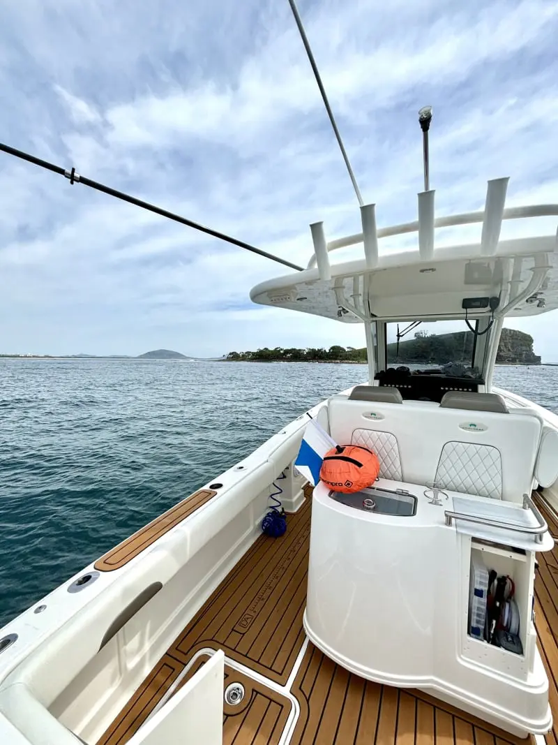 - Removable casting platform with deck armour and full sun lounge/bed cushions