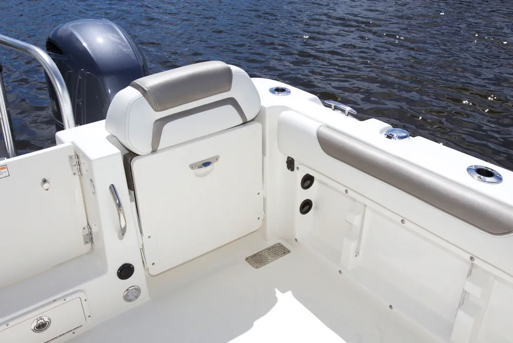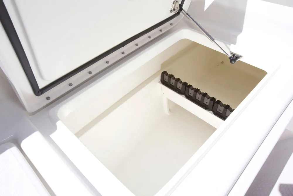 • Port seatbox houses 200-quart insulated fish box / cooler