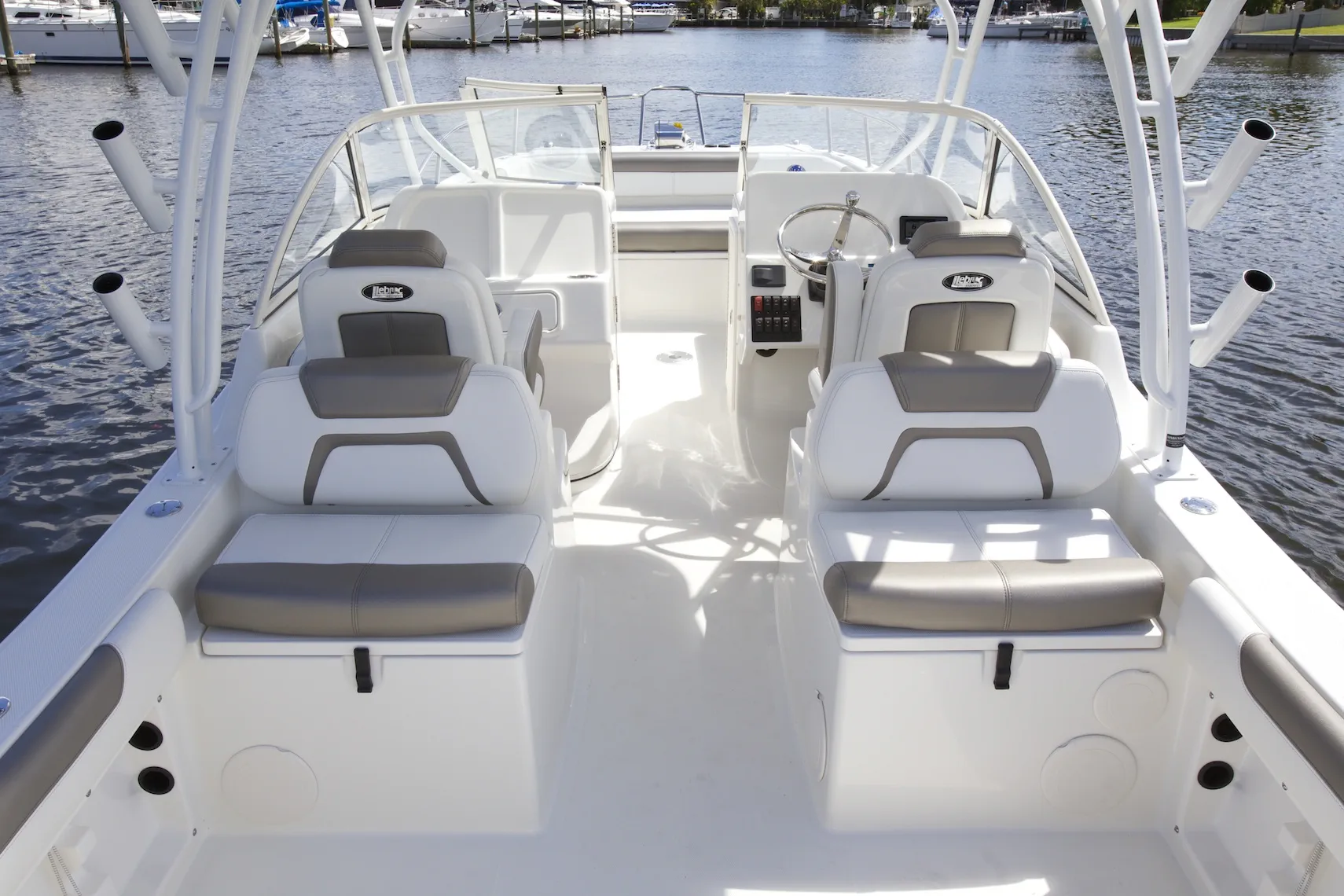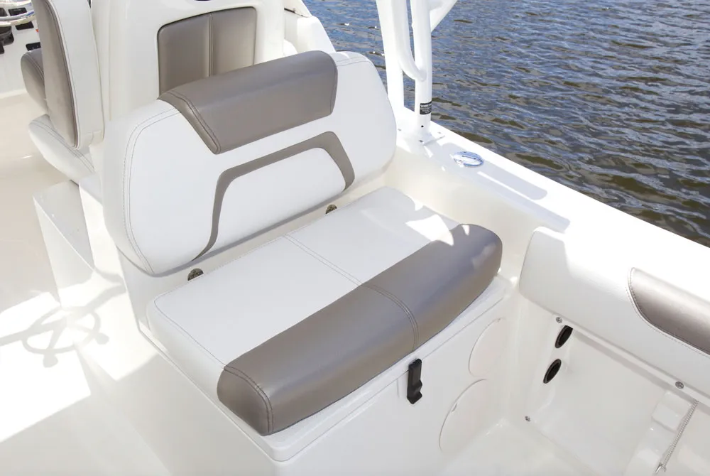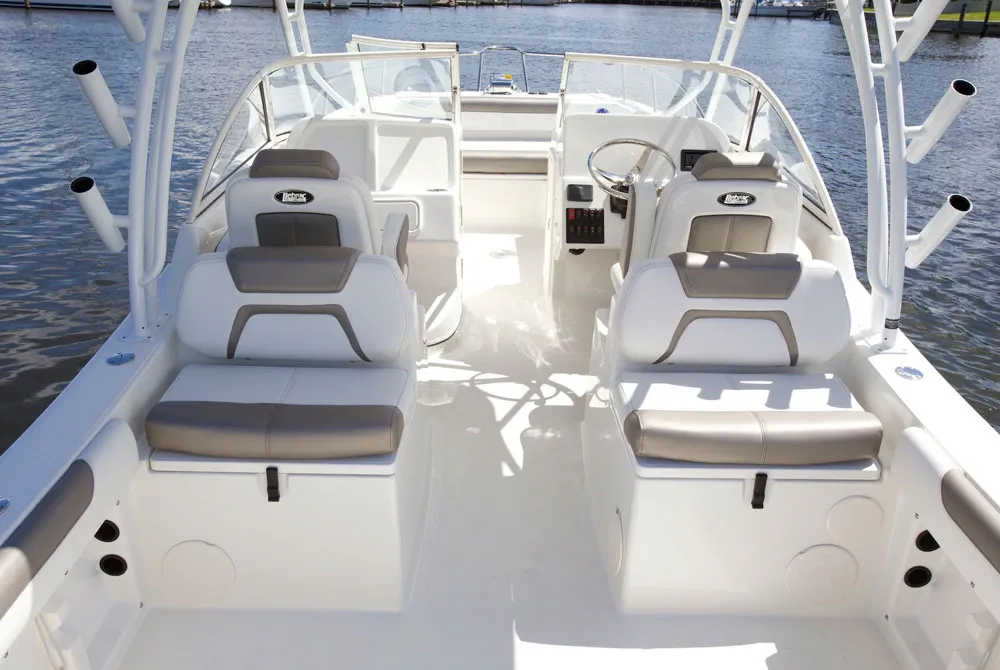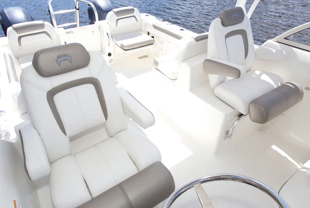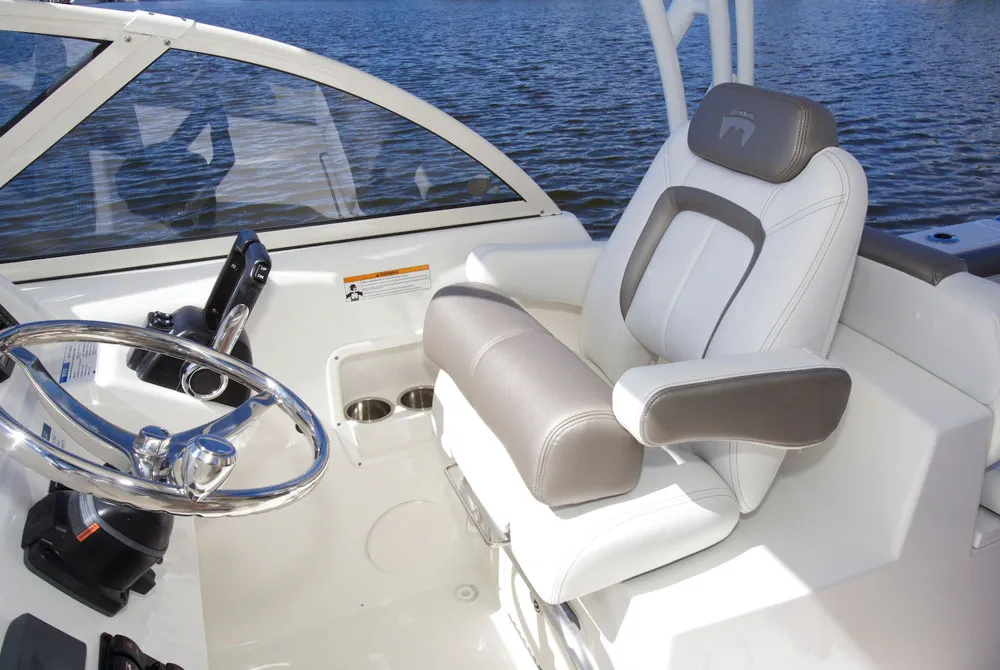 • Helm and passenger dual custom seats with flip-up bolsters and recessed stainless steel cup holders