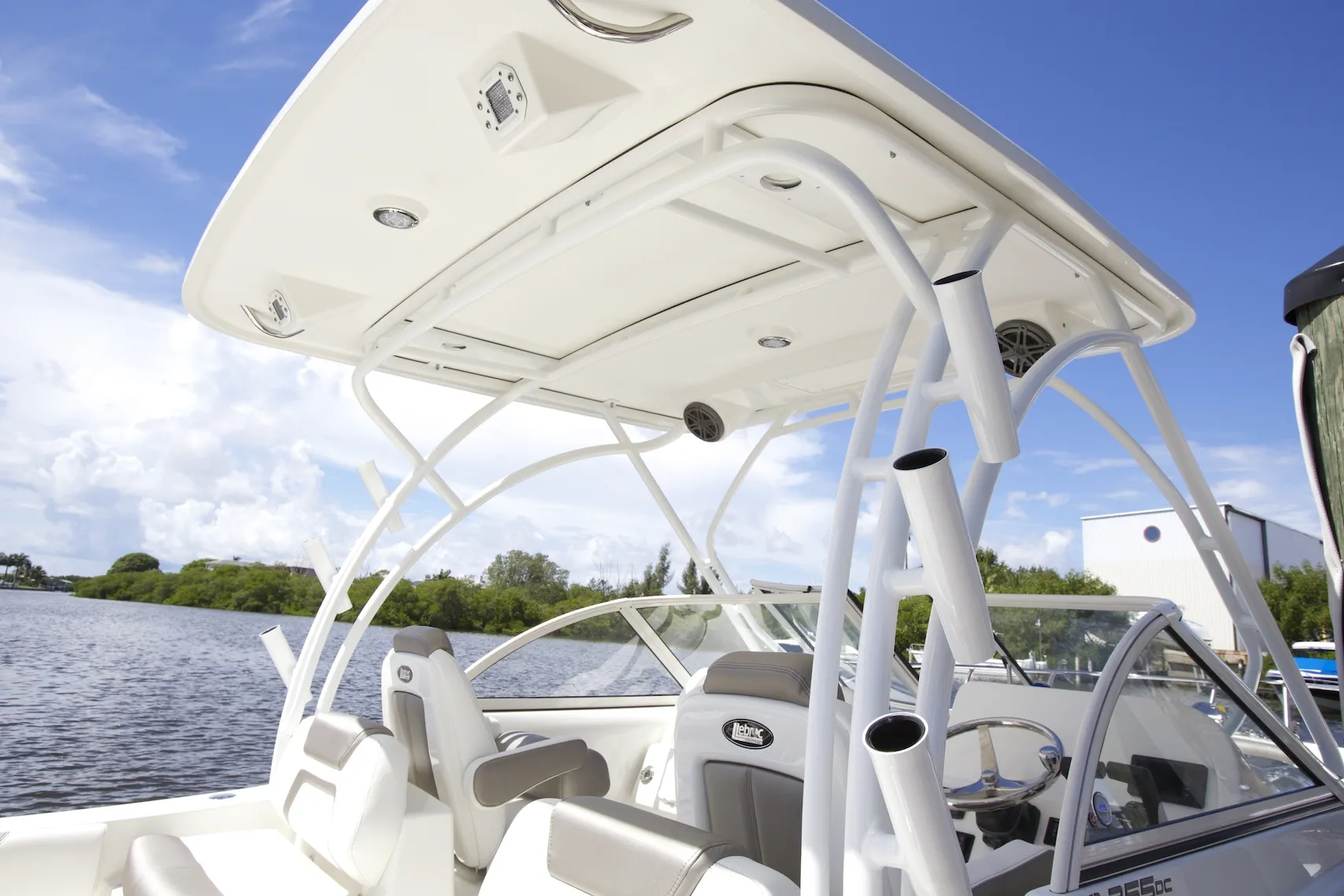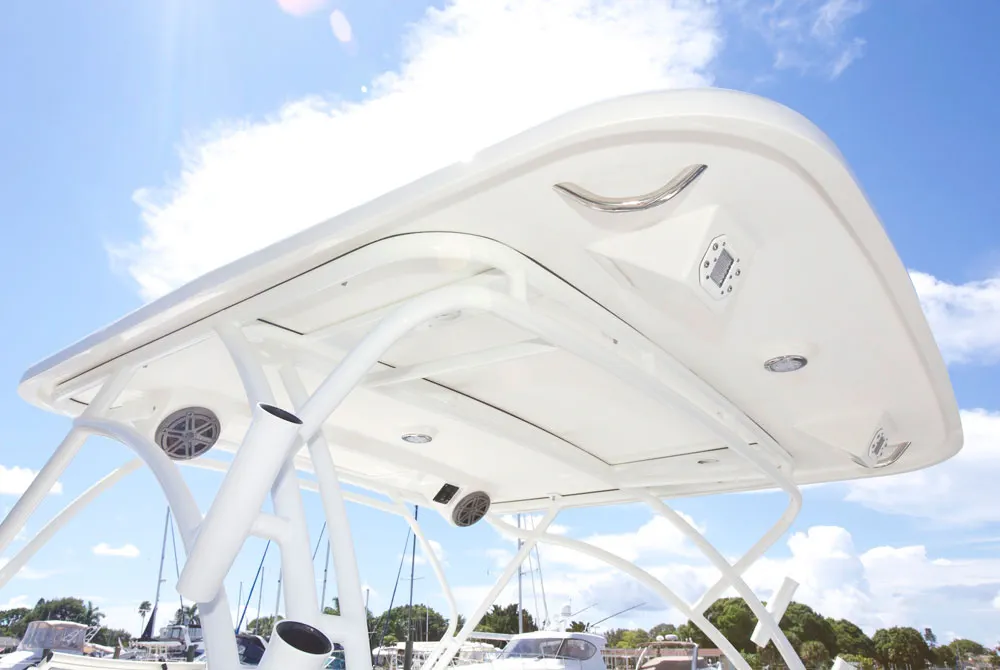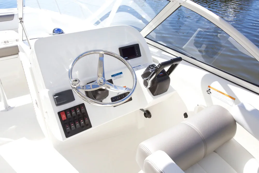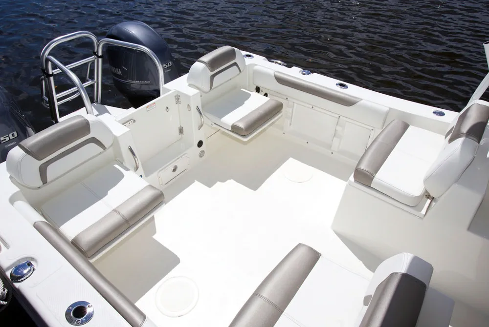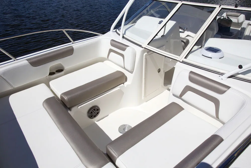 • Helm and passenger dual custom seats with flip-up bolsters and recessed stainless steel cup holders