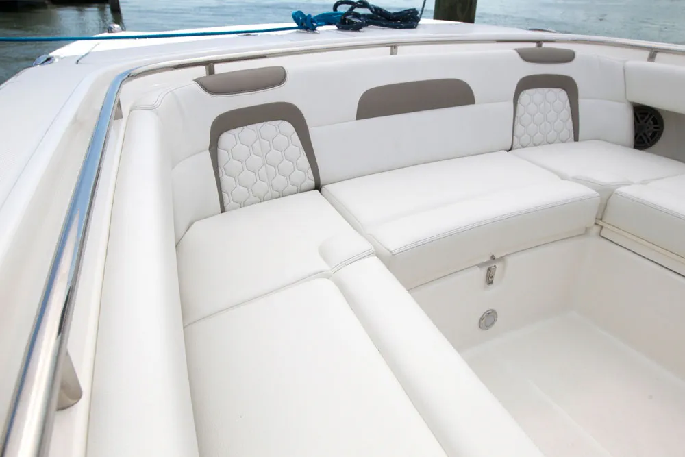 • Deck-level continuous S/S grab rail provides support to bow seating while staying out of the way