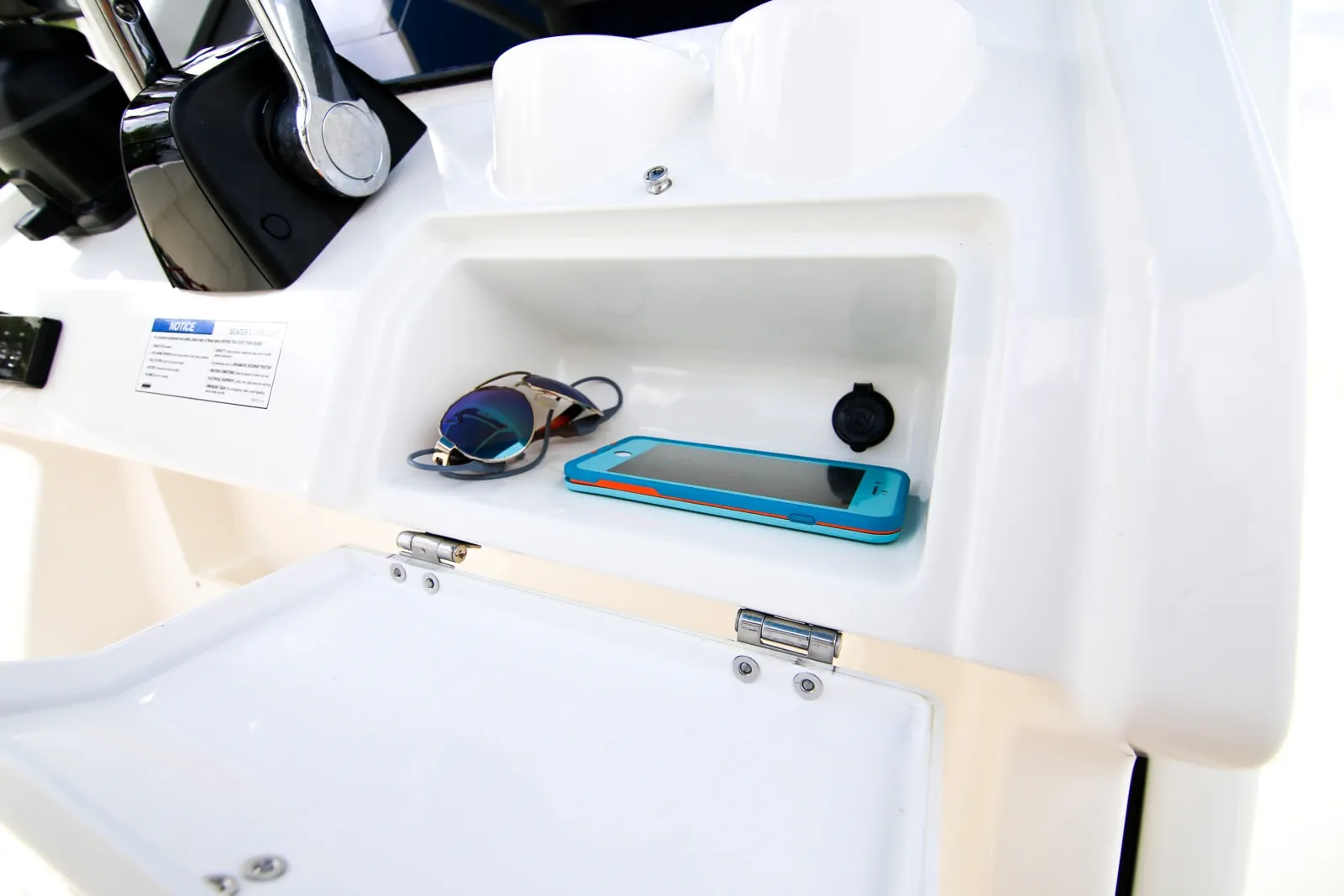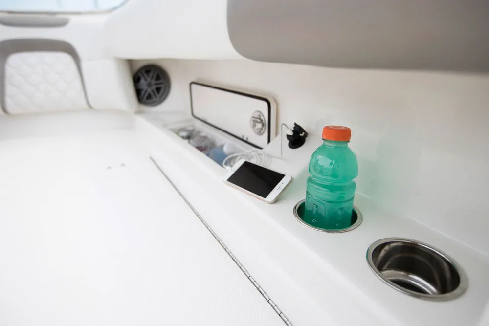 • Port and starboard 6-quart personal cooler areas under gunwales keeps cold beverages at hand