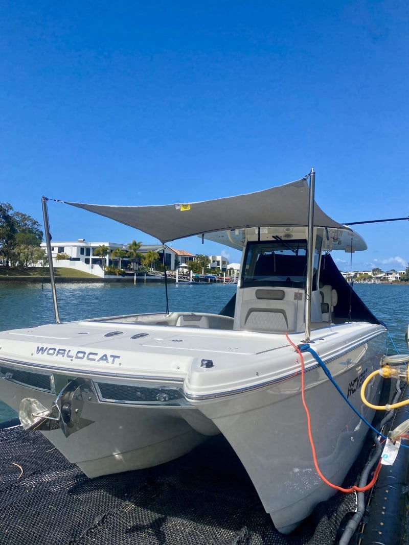 • Aggressive bow styling with integrated high-intensity LED docking lights, surrounding fascia, thru-hull anchor and World Cat lettering