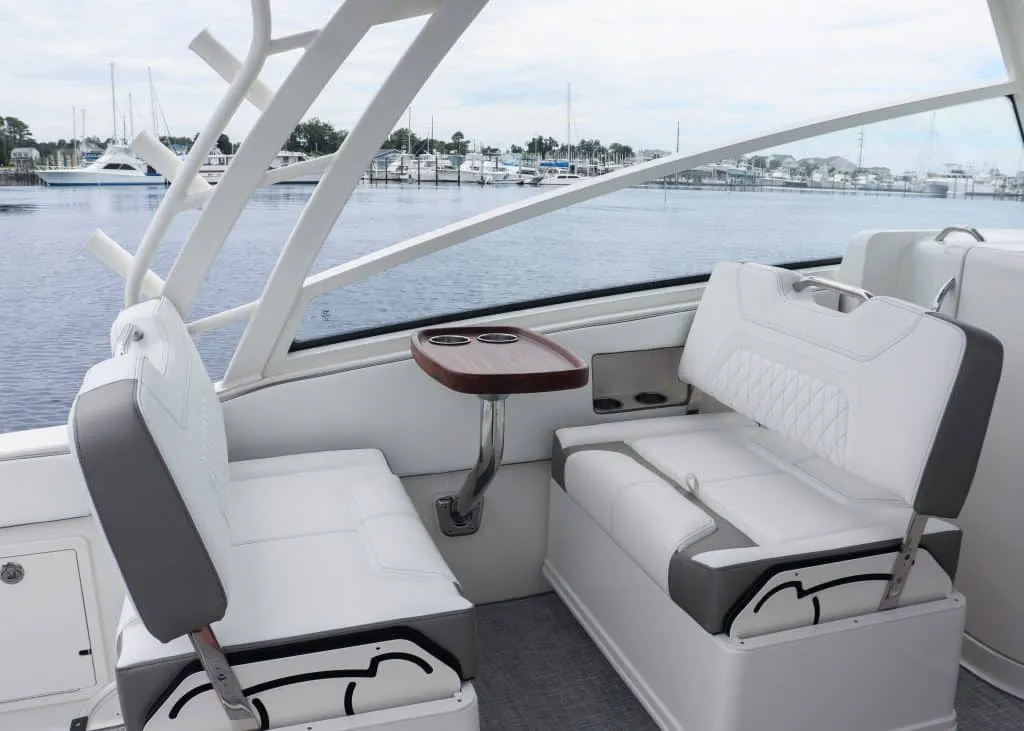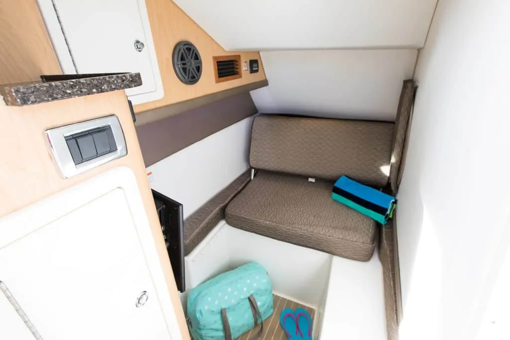 • Aft facing seating that folds into 72” long berth (54” wide) with storage underneath