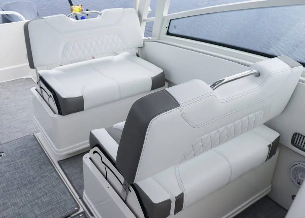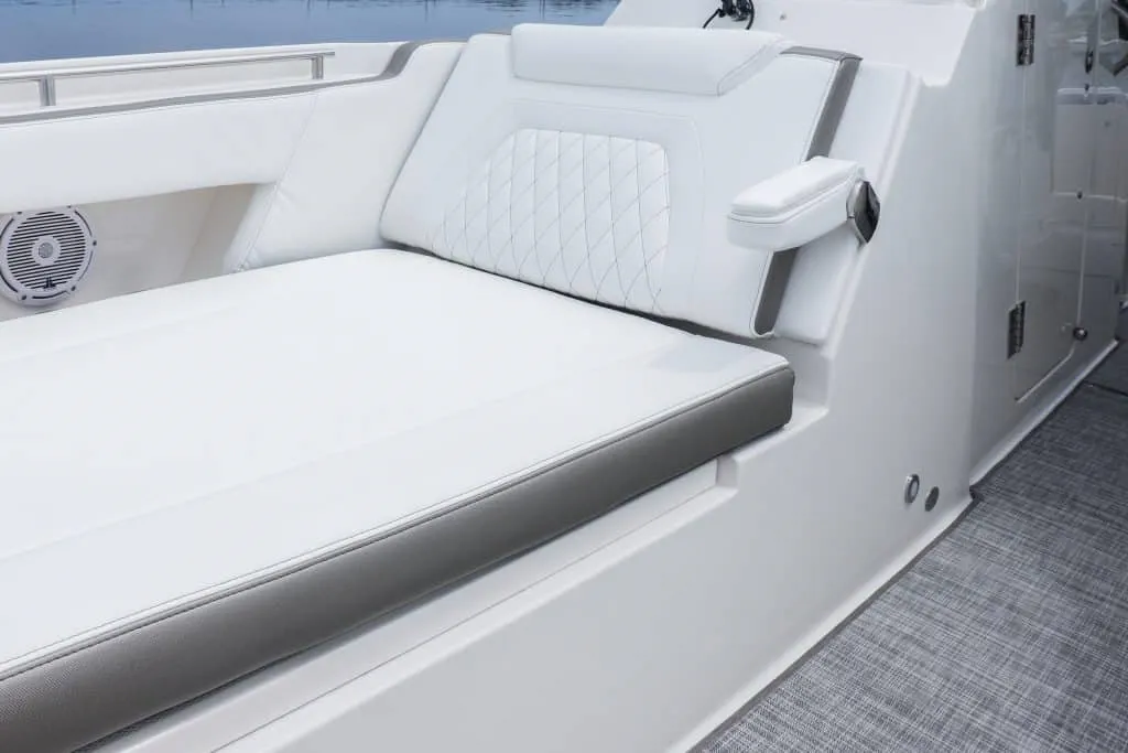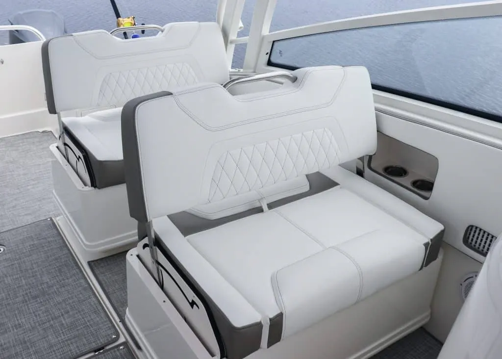 • Adjustable helm bench seat with inboard, pull-up armrest and single bolster system