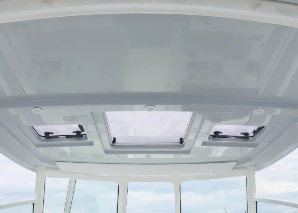 • Fiberglass hardtop, 2 forward facing fresh air hatches, moonroof centerline (manual operation), LED spreader & down lights