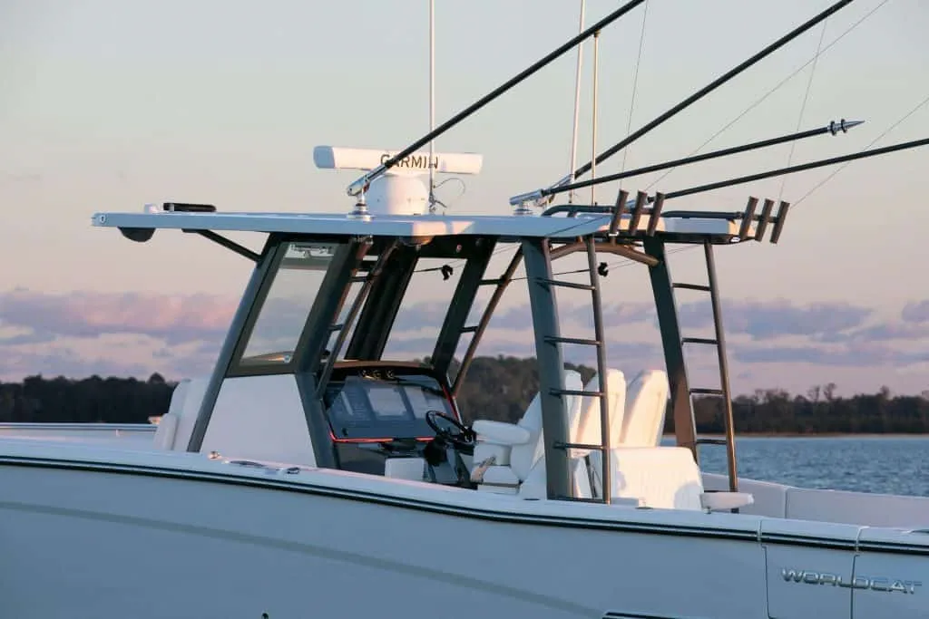 • Fiberglass T-top w/integrated powder coated aluminum D-frame w/switch panel